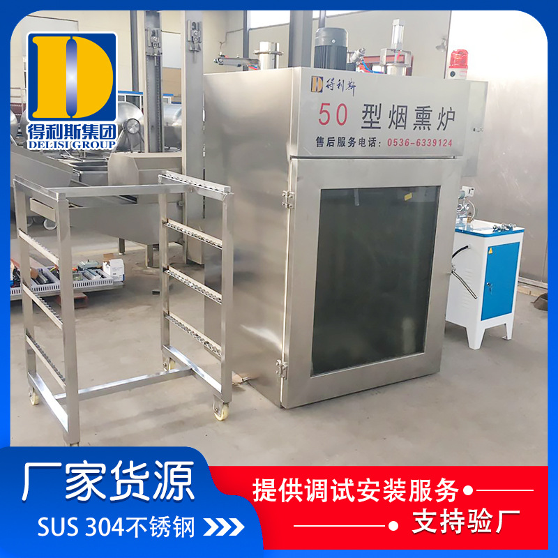 全自動煙熏爐的發(fā)煙系統(tǒng): 外置式木粒、木屑發(fā)煙系統(tǒng),不僅使產(chǎn)品產(chǎn)生果木香氣,而且可以使產(chǎn)品熏成由淺入深的金黃色。外置全自動煙熏爐分體式糖爐發(fā)煙系統(tǒng),可熏制傳統(tǒng)的中式產(chǎn)品,產(chǎn)生糖熏味道,并且顏色可以控制,深可以成為棗紅色。兩種發(fā)煙系統(tǒng)同時使用能產(chǎn)生煙熏香氣和顏色。門上木粒發(fā)煙系統(tǒng),采用世界上先 進的內(nèi)循環(huán)發(fā)煙工藝,低氧狀態(tài)發(fā)煙,縮短煙道長度,降低能耗,減少設(shè)備占地面積。材質(zhì)、保溫 箱體結(jié)構(gòu)以單車為單元,可以拼裝成不同的組合。材質(zhì)采用進口SUS304不銹鋼拉絲扳。保溫層采用進口聚氨酯保溫材料,耐高溫一次成型,保溫性能好??刂圃骷?PLC、人機界面、電磁閥等關(guān)鍵元器件采用進口產(chǎn)品。加熱方式 采用外接蒸汽加熱或電加熱方式。配備在線清洗系統(tǒng)。門鎖和門合頁及密封條設(shè)計合理,密封嚴密,操作方便。生熟區(qū)門互鎖,區(qū)域隔離,符合HACCP要求。