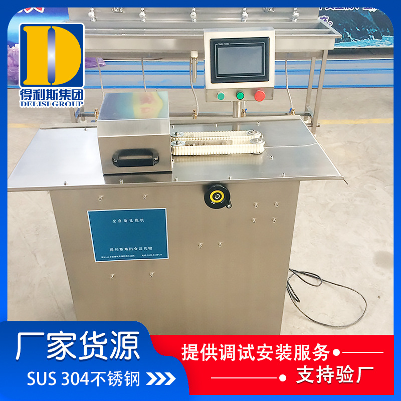 1、SUS304不銹鋼制造,體積小,效率高,易操作。控制系統采用觸摸屏和伺服控制系統,具有手動和自動連續兩種生產模式,在自動連續模式下生產效率更高,省時、省力。直觀的觸摸屏控制畫面,能夠設置生產的速度,扎線的圈數,拖腸的時間等參數,還能對生產進行產量統計