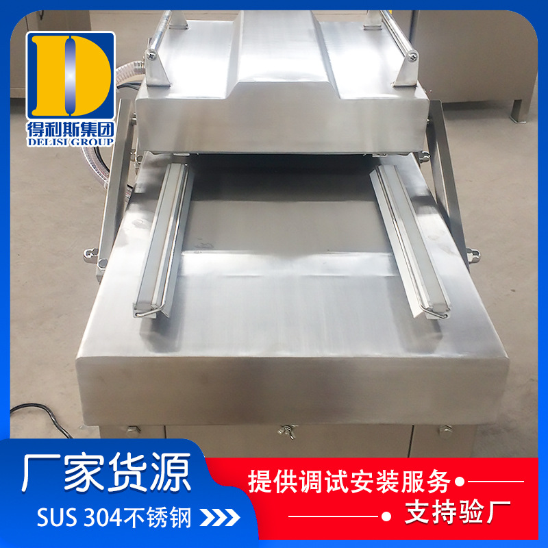 全不銹鋼SUS304材質(zhì)5mm真空室超厚鋼板,8mm真空室底板,不變形進(jìn)口PLC可編程邏輯控制器外置旋片式真空泵技術(shù),低噪音設(shè)計(jì)配置中德合資V100型真空泵。(抽氣速度100m3/小時(shí))
