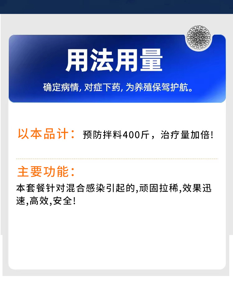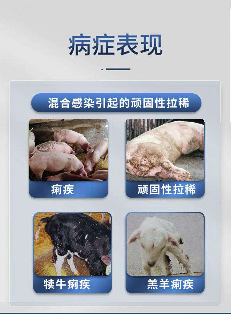 產(chǎn)品簡介:針對混合感染引起的頑固性拉稀,效果迅速,高效安全!