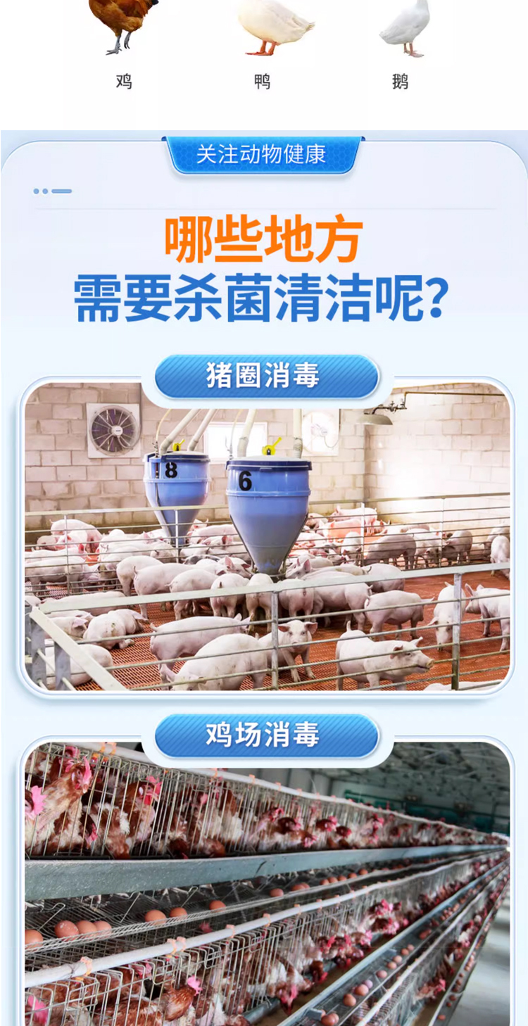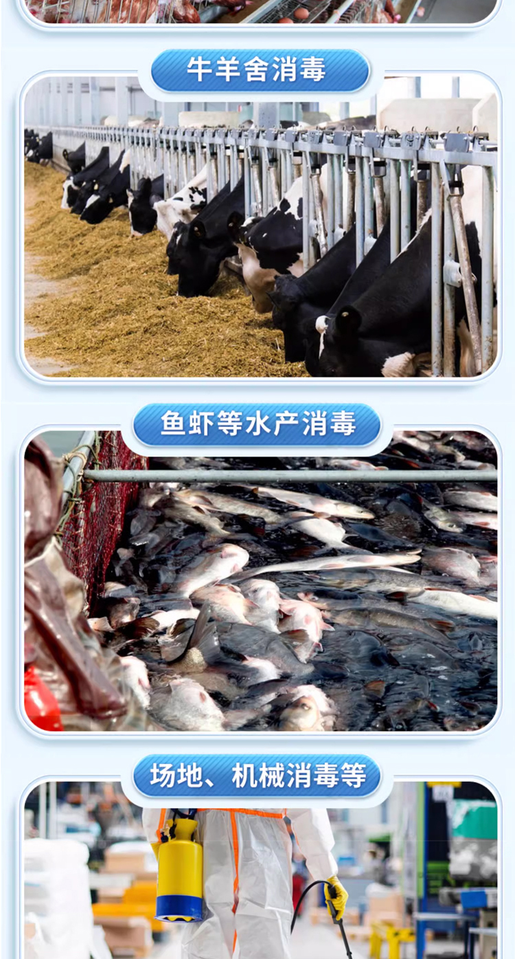 4、使用方便,可噴霧、熏蒸、干撒、浸泡、器械、飲水消毒都無需考慮不良反應;