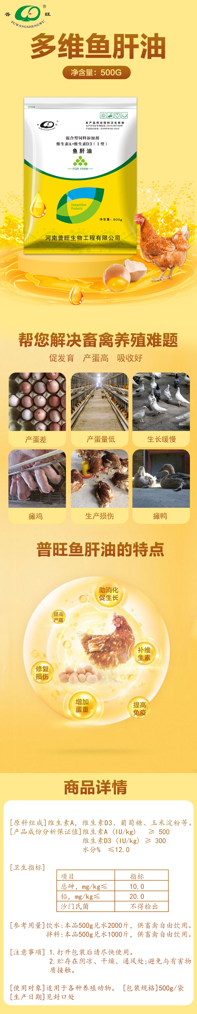 普旺多維魚肝油混合型飼料添加劑促發育產蛋高吸收好