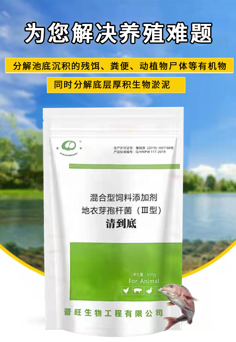 產品簡介:普旺生物水產藥清到底 改底調水增氧除臭分解淤泥混合型飼料添加劑-地衣芽孢桿菌