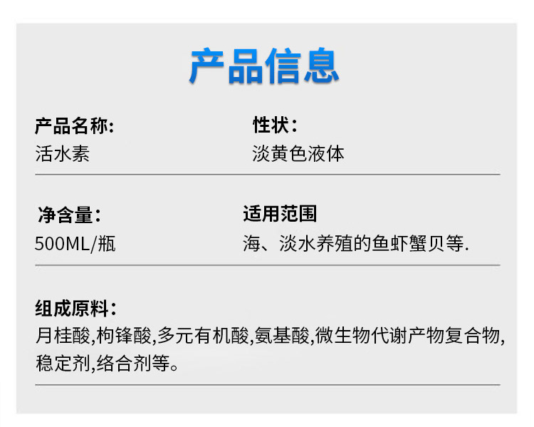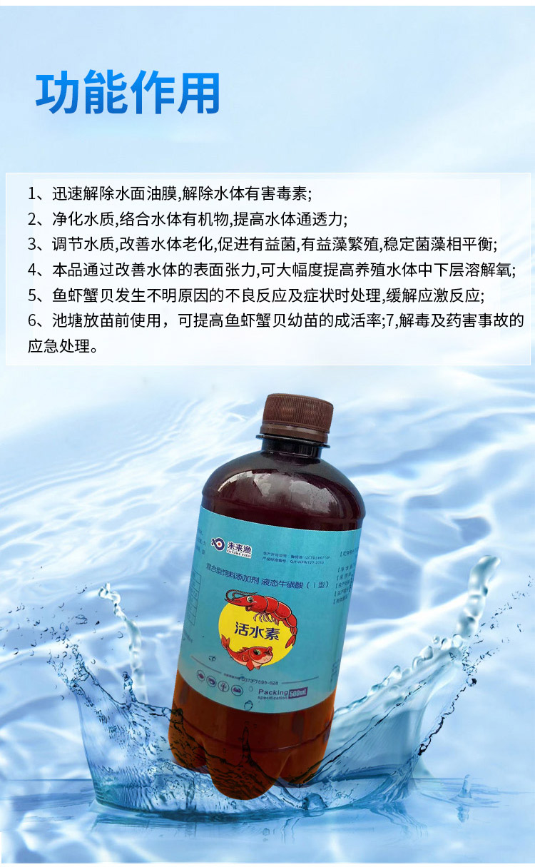 產(chǎn)品簡介:未來漁 活水素調(diào)水凈水 消除油膜 活化水質(zhì)水產(chǎn)類 水質(zhì)改良劑 止病于現(xiàn)在 防患于未來 調(diào)水解毒凈水