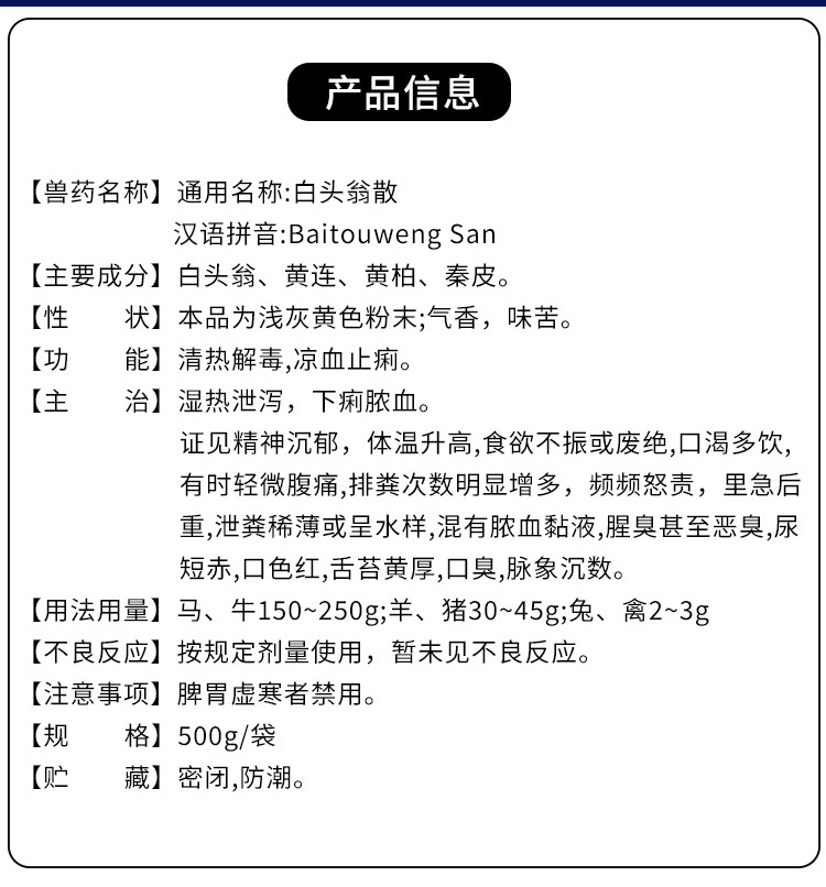 白頭翁散 拉稀腹瀉飼料添加劑 獸藥廠家